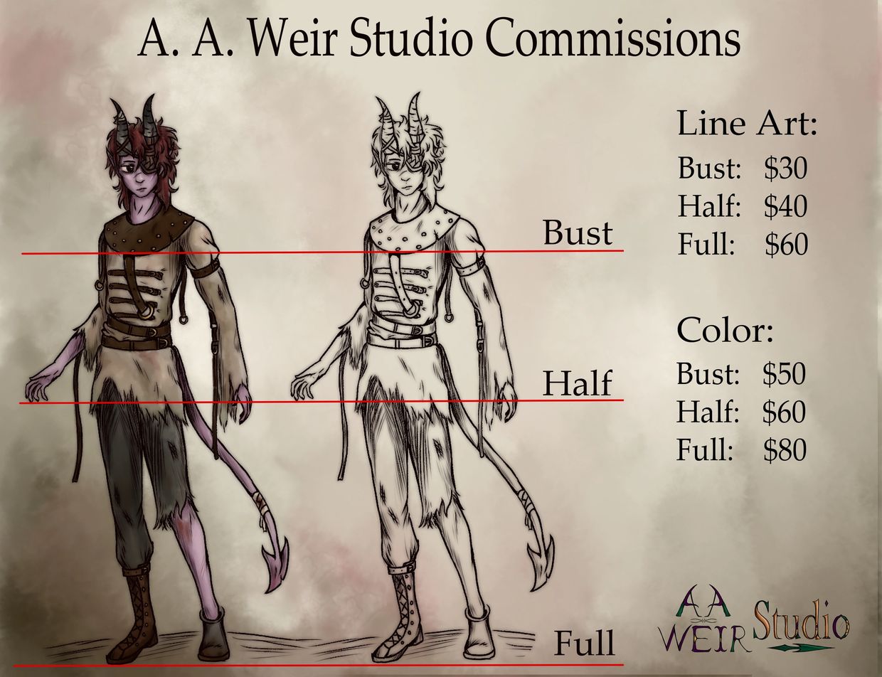 * If commissions are closed due to an excess volume of requests, please feel free to contact aaweirstudios@gmail.com to be put on a waitlist.
